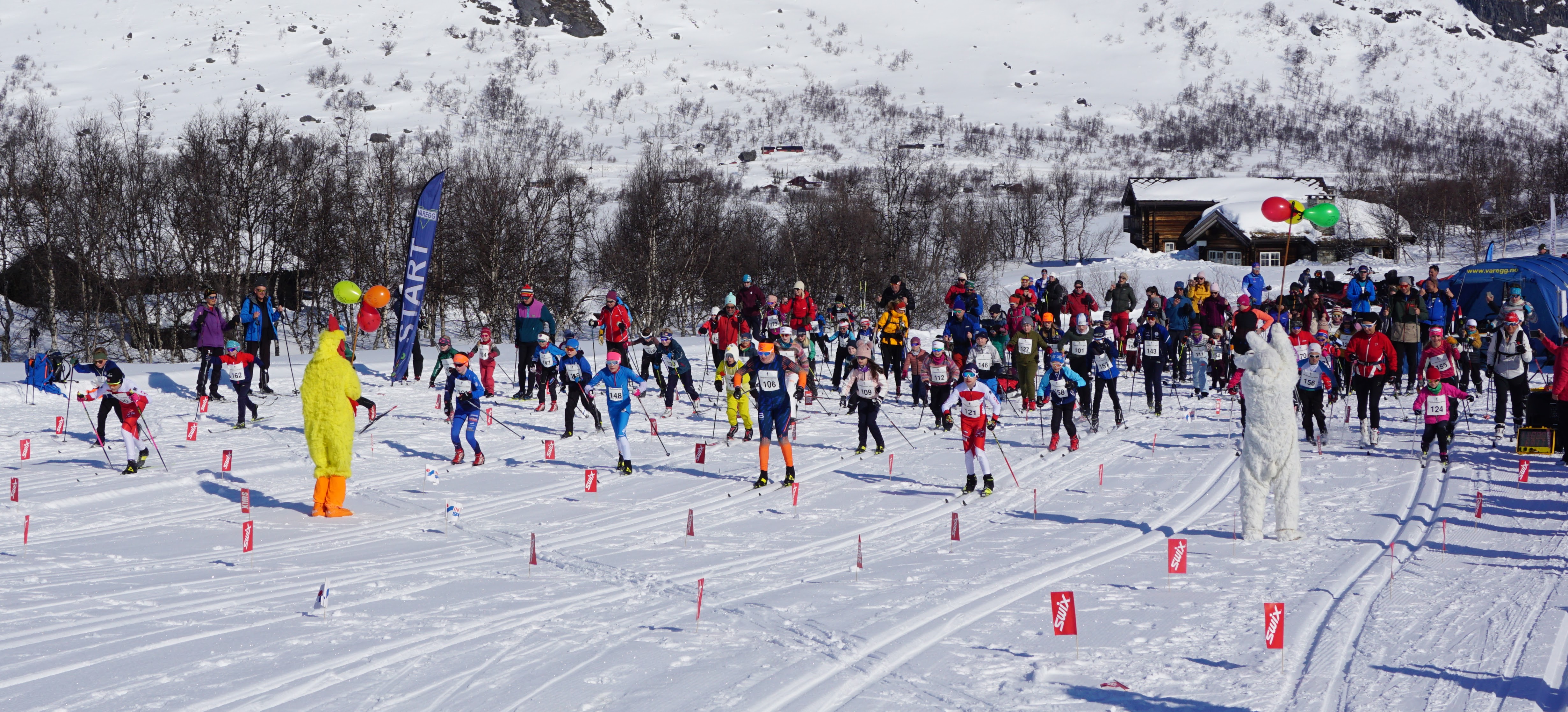 145 skiløpere stod på startstreken i årets utgave. Påskeharen og en påskekylling viftet barneskirennet i gang – 75 ivrige løpere satte fart i retning Gamlestøga