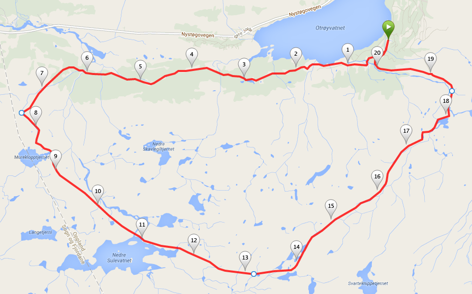 20 km løypen er målt til 20,6 km. Høyeste punkt ligger på 1330 moh, og med laveste på ca. 940 moh er høydeforskjellen ca 380 m. Mesteparten av stigningen gjøres unna på vei til Sulebu.